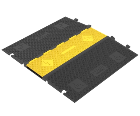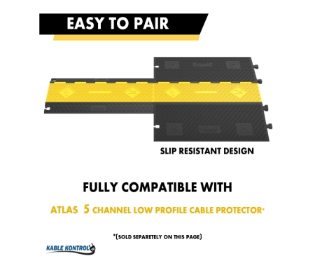 The ATLAS® ADA Cable Protector Ramp combines robust cable protection with ADA compliance, ensuring safety and accessibility in high-traffic environments. Designed with gently sloped ramps and textured surfaces, it accommodates pedestrians, wheelchairs, carts, and vehicles while shielding cables and hoses from damage. Manufactured from heavy-duty, weather-resistant industrial grade rubber base and an HDPE lid the ATLAS® ADA Cable Protector Ramp is suitable for both indoor and outdoor use, offering exceptional durability and reliability. Its interlocking design allows for easy installation and customization to fit various applications, making it an ideal solution for events, construction sites, and industrial settings that require accessibility without compromising cable protection.