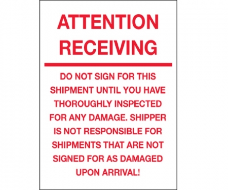 "Attention Receiving - Do Not Sign For This Shipment" Labels