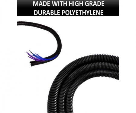 Kable Kontrol Convoluted Black wire loom tubing is ideal for organizing cables and managing cords into bundles that will help keep your electronic equipment or hose systems in order and prevent equipment failure or fire hazards. Kable Kontrol Black split wire loom tubing is an affordable cable organizer and cable protector that is made of polyethylene convoluted tubing. Convoluted wire loom is resistant to auto fluids and chemicals and has an operating temperature range of -40ā to +200ā (-40ā to +93ā). Black wire loom is an ideal way to protect your wire, cable, or hose applications. Colored wire loom comes with split loom which offers easy installation; just open the tubing along the slit and insert the wires. It is also highly flexible, resists gas and chemicals, and secures your wires, cables, or even small hoses. Split black wire loom tubing is suitable for use in many industries, such as automotive, computer/electronics, farm/agricultural, marine, recreation vehicles, telecommunications, construction, and specialty markets. For additional wire loom solutions, please see our Chrome Wire Loom, our Colored Wire Loom, our Nylon Wire Loom, our Flame Retardant Wire Loom, or our Non-Slit Wire Loom. For other wire looms, cable, or hose bundling and protection options, please see our Braided Sleeving our Spiral Wrap.