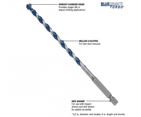 BOSCH® Bluegranite Turbo Carbide Hammer Drill Bits Features