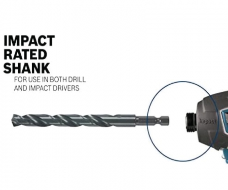 Bosch Impact Tough™ Black Oxide Drill Bits are engineered for use in the higher torque impact drill/drivers. They provide longer life than standard drill bits, thanks to their tip design and black oxide coating. The coating provides less friction and thus less generated heat. The bits have impact-rated shanks. With long flutes for excellent speed, these bits are built for general-purpose applications and work great in wood, plastic and light-gauge metal materials. They are great for general contractors and installers.