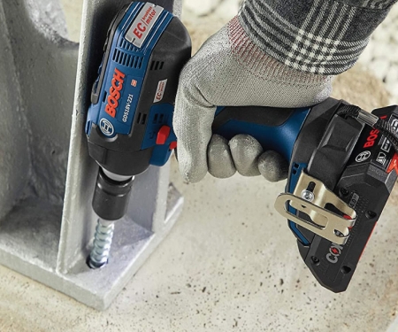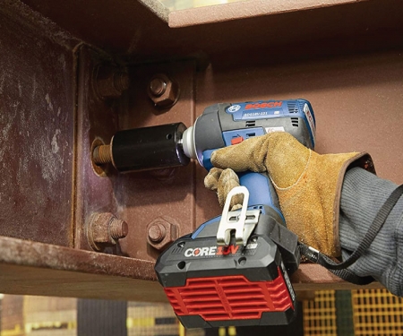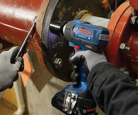 The Bosch GDS18V-221B25 18V EC Brushless 1/2 In. Impact Wrench with Friction Ring and Thru-hole is designed for driving high-torque bolts, nuts, and anchors. This impact wrench features Auto Bolt Release, which stops rotation when there is no torque on the tool to prevent accidentally dropping bolts and nuts during removal. The tool also has Bosch’s hammer-and-anvil system, which delivers great impact energy. The efficient EC Brushless motor features a long runtime and delivers up to 221 Ft.-Lbs. of torque, 0-3,400 no-load ipm and 0-2,400 no-load rpm. This wrench was built with a compact design; it has a 6.4 In. head length and a weight of just 2.77 Lbs. The kit includes two next-gen CORE18V 4.0 Ah compact batteries. Each keeps the power and runtime, while losing the weight, with 21700 cell technology. The CORE18V exceeds the power of the original two-layer 4.0 Ah battery with half the number of cells. It features the CoolPack 2.0 heat-management system for extended runtime and battery lifetime.