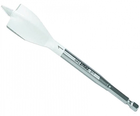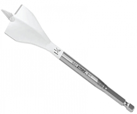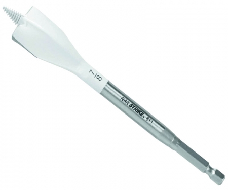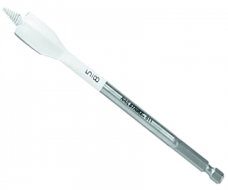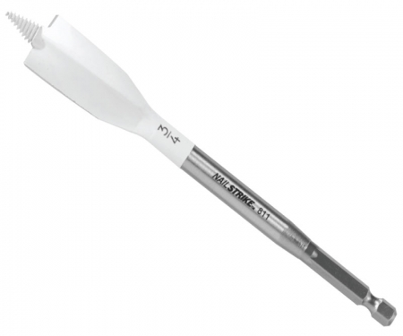 Bosch Nail Strike Wood-Boring Bits are the first wood-boring bits to power through nail-embedded wood. The bit features reamer edges made of tough, reinforced steel that cut through up to 30 nails. Each bit has a fully threaded cone tip that pulls it through the wood, offering best-in-class speed through 2x4s. These bits are ideal for boring clean holes through wood fast to run conduit or pipe. The contoured paddle design also enhances chip removal, contributing to the fast performance. The hex shank with power groove reduces bit slippage in the drill and makes it suitable for use with a variety of drill types, including impact drills. These bits should not be used in a drill press and are not intended for counter boring or doweling.