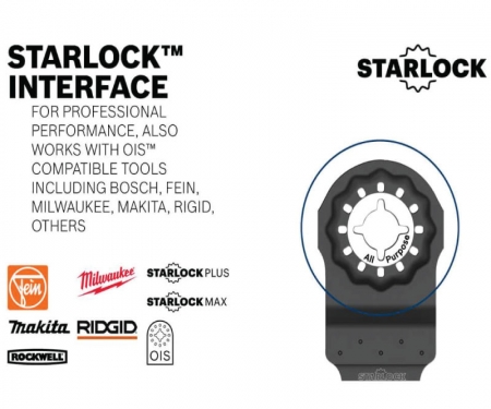 - Starlock® interface for professional performance, also works with OIS® compatible tools including Bosch, Fein, Milwaukee, Makita, rigid, others