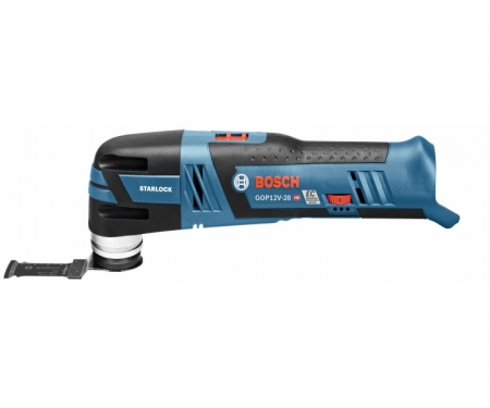 The Bosch GOP12V-28N 12 V Max Starlock® Oscillating Multi-Tool features the Starlock® next-generation 3-D tool-accessory interface. This cupped and contoured 3-D tool-accessory connection delivers greater torque transfer. The efficient 12 V Max EC Brushless motor delivers a top speed of up to 20,000 oscillations per minute, with great runtime. The tool has a 2.8° oscillating arc for outstanding productivity. A variable-speed dial allows the user to set the optimal speed for the task at hand. This light, ergonomic and compact tool reaches tight spaces. It utilizes the many Starlock® accessories to handle flush-cutting, plunge-cutting, sanding, grinding, and more. It's an ideal tool to flush-cut doorjambs. This is a bare-tool kit – the battery and charger are sold separately.