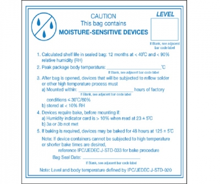 "Caution Moisture Sensitive Devices" Labels Features