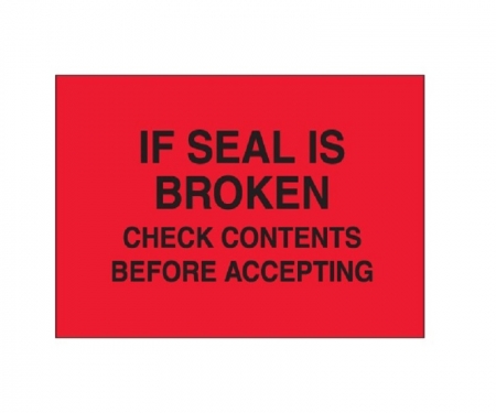 "Check Contents Before Accepting" Fluorescent Red Labels Features