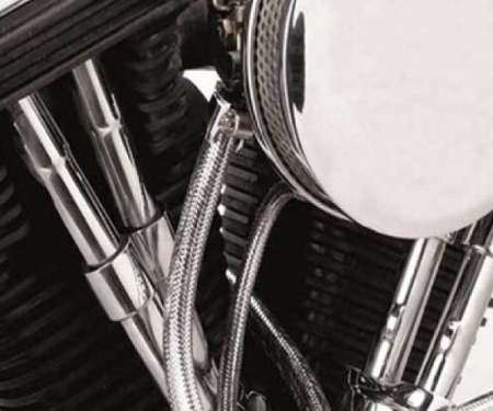Flexo Chrome heavy duty expandable metallized mylar sleeve is ideal for dressing up any application with the look of braided stainless steel. Chrome braided sleeving has a more open look, with transparent PET braided together with the metallic strands to create an attractive glimmer when light strikes it and allows the color of the application to come through for a special effect. For more complete coverage and a different visual effect, take a look at our full coverage chrome XC. Made with full slit heavy duty Mylar, Flexo Chrome will provide years of attractive hose or wire covering