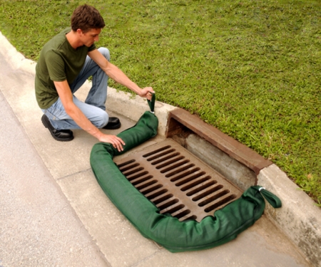 - Use in front of storm drains, around downspouts, in gullies and ditches, or anywhere there is potential for harmful stormwater runoff.
