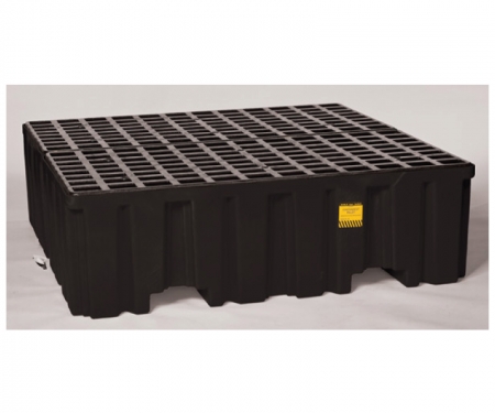 The Eagle 2 drum & 4 Drum Pallet is constructed of durable yellow high-density polyethylene (HDPE) for excellent chemical resistance. This platform includes Eagle's patented removable HDPE grating and a drain for easy cleaning and has convenient forklift pockets