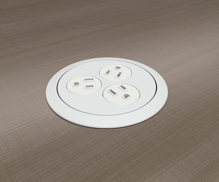 The Byrne Eclipse is a circular power grommet with a stylish design with high functionality, boasting three power outlets. When closed, it looks clean on any table surface with color options of black and white to compliment any setting. It can be easily accessed with a simple rotating face.