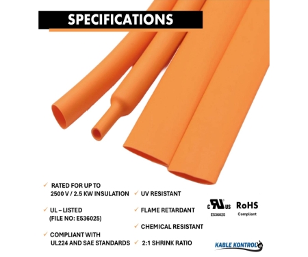2:1 Shrink Ratio | Insulates Up To 2.5KV | UL Listed | Orange Color