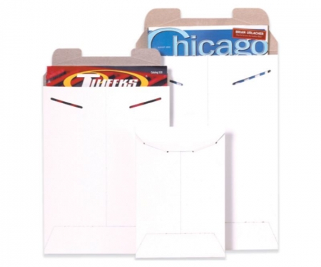 Pack Kontrol® White Flat Envelope Mailers are strong mailers comprised of white chipboard that protects your papers, photos, and documents during shipping. They are lightweight, which saves on additional fees, and no supplementary stiffeners are required. These mailers use a convenient tab lock design.