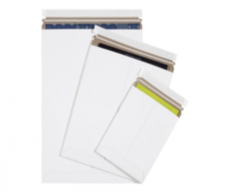 Pack Kontrol® White Self Seal Flat Envelope Mailers are strong chipboard mailers that will protect important photos and documents during shipping. They are made from lightweight chipboard, which saved on freight costs, and do not require any supplementary stiffening to preserve the integrity of their contents. They have a simple peel and seal closure with a pull tab that tears for easy access.