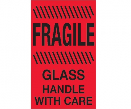 "Fragile - Glass - Handle With Care" Fluorescent Red Labels Features