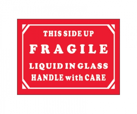 "Fragile - Liquid In Glass - Handle With Care" Labels Features