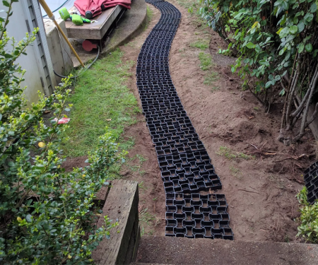 These plastic pavers can also be used to create gravel walkways and pathways through or across your property. The great drainage of this product means that the gravel remains fairly dry, even during rain making is great for creating an area of porous pavement between your home, garage, and other outbuildings. Patio areas can be created with gravel surfaces that are far more visually pleasing than concrete slabs. geogrid plastic paving will improve the drainage of your patio rather than cause more water run off.