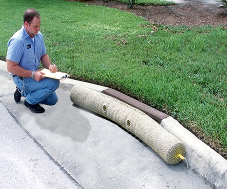 The Ultra-Gutter Guard® is manufactured from recycled synthetic fibers and designed to filter out silt and other debris from stormwater before it drains into curb inlets. With built-in overflow ports, it allows water to pass through during major rainfall events, to protect against clogging. No installation required; simply place in front of curb inlet with at least a 12” overlap on each side.