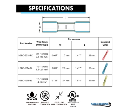 Kable Kontrol® Heat Shrink Butt Splice Connector - Insulated Features