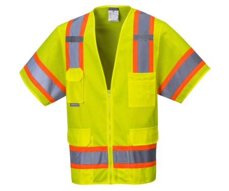 The Portwest US373 Aurora Hi Vis Sleeved Vest is a safety vest made from 100% polyester wrap knit material. The back and sleeves are lined with polyester mesh material. This reflective jacket also comes with 2” reflective tape as well as contrast material that is also made from Polyester Mesh.