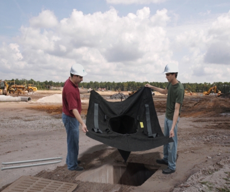 Protecting the drainage at a worksite is a simple matter with the Ultra-Drain Guard. This high-capacity drain guard is built with heavy-duty, needle-punched geotextile material that absorbs oil, grease, and other hydrocarbons, and captures up to 300 lbs. of sediment, dirt, and debris. The catch basin insert is easily installed and secured into place using a grate and retainer bars (sold separately).
