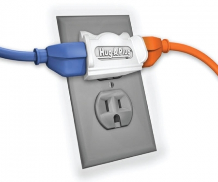 Hug-A-Plug is an attractive, premium-quality 15a 125v current tap, designed to connect electrical cords parallel to outlet surfaces. It eliminates wasted space at outlets by minimizing the clearance required behind furniture, appliances, etc., and eliminates bending, crimping, and damage to cords, significantly reducing the risk of electrical shocks and fires.