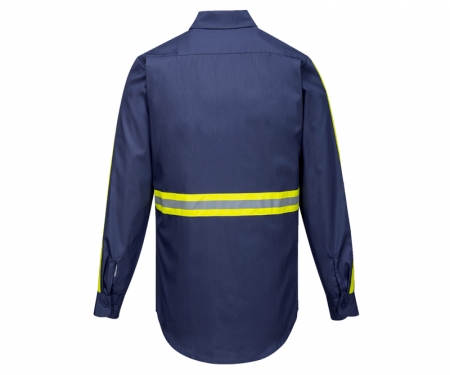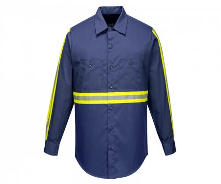 The Portwest F125 Iona Hi Vis Long Sleeve Shirt is a part of the Iona Xtra range which combines practical design and colors with reflective taping and contrast fluorescent material providing extra visibility in low light conditions. This button-up shirt is made with Kingsmill fabric which guarantees high performance and maximum comfort. The yarns on this shirt are ring spun with long-staple combed cotton providing a smooth handle and excellent pilling resistance. The material is fully pre-shrunk and has superior dye retention. A UPF rating of 50+ will block over 98% of UV rays.