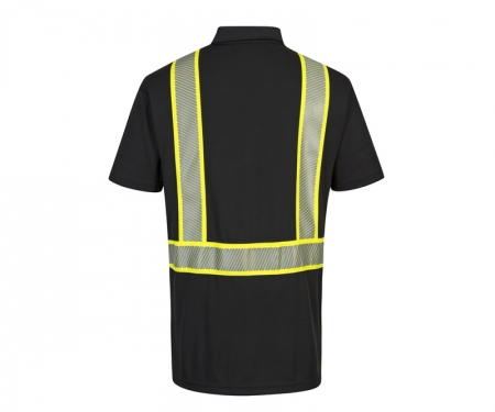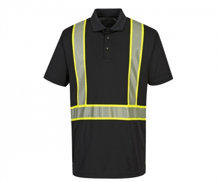 This polo is lined with heat applied 2" silver HiVisTex Pro reflective tape with contrast material on the torso. This hi vis shirt is made with moisture wicking and breathable fabric which, along with the side vents on the lower half, keep the wearer dry for longer. Loop at placket, ideal for attaching glasses or pens.