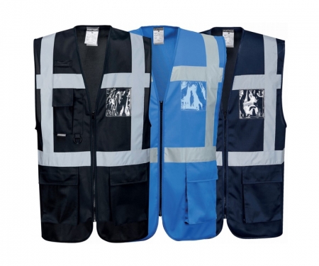 The Portwest UF476 Executive Iona Safety Vest is a part of the Portwest Iona range that combines practical design and colors with reflective taping to give extra visibility in low light conditions. Lightweight, comfortable and highly breathable, these vests can be worn over layers to ensure visibility without adding bulk. This safety vest uses 2” silver reflective tape to contrast the darker colors.