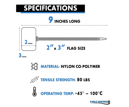 Optimize your cable management with Kable Kontrol® Large ID Flag Cable Zip Ties. Experience the benefits of robust strength, clear identification, and long-lasting durability with our premium zip ties. Invest in quality and reliability for your cable identification needs.