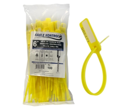 Keeping cables secure and properly identified can be a challenge, especially when accuracy and traceability are critical. Serialized Flag Identification Numbered Cable Ties solve this problem by combining strong bundling, tamper-resistant design, and unique serial numbers for complete peace of mind. Each tie features a durable nylon co-polymer construction with a built-in flag, hot-stamped with a six-digit non-repeating serial number that ensures every tie is uniquely identifiable. Unlike standard cable ties, these provide both physical security and reliable traceability, making them ideal for industries where accountability matters. With a 60 lb tensile strength, these ties securely bundle cables, wires, and equipment while resisting tampering thanks to their one-piece design. UV-stabilized and built for extreme temperatures from -45°C to 100°C (-50°F to 212°F), these ties perform in harsh outdoor or industrial environments without fading or breaking down. With a simple one-piece design, installation is quick and secure, no special tools required.