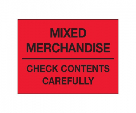"Mixed Merchandise - Check Contents Carefully" Fluorescent Red Labels