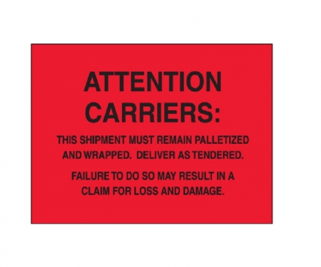 "Must Remain Palletized" Fluorescent Red Labels Features