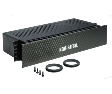 The Neat patch cable management solution is the ideal method for your patch-cable storage. It is uniquely designed to enable the storage of excess patch cables into a neat and tidy compartment,. It provides you with 500 cubic inches of storage allowing control of your network using bend radius compliant. This item is an ideal time saver as it will enable you after installation to trace your circuits in seconds. Even high density switches which usually cause cable management problems are lessened by the much needed storage between the patch panels. Neat Patch saves Cable Installers and IT managers time and money by eliminating the clutter and expense of unnecessarily long patch cords. You'll find that our shorter, space-efficient patch cables require no vertical management. With Neat-Patch, the only reason that you'd use vertical cable management would be to fiber-link network switches.