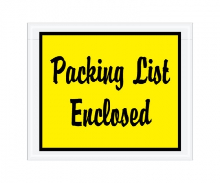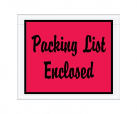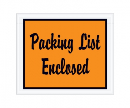 - Panel face & Full face, colored Packing List Envelopes are pre-printed with "Packing List Enclosed" in script font on heavy 2 Mil poly