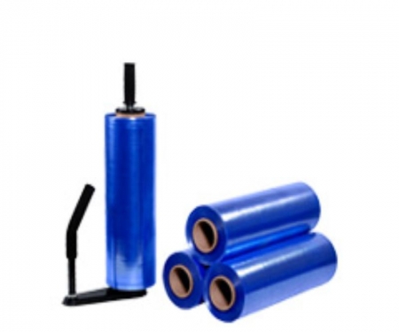Corrosion inhibitor embedded in blue stretch film. Hand stretch film.
