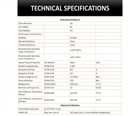 | Heat Deflection Temperature @264psi | ASTM D648 | 104 (40) | °F (°C) |