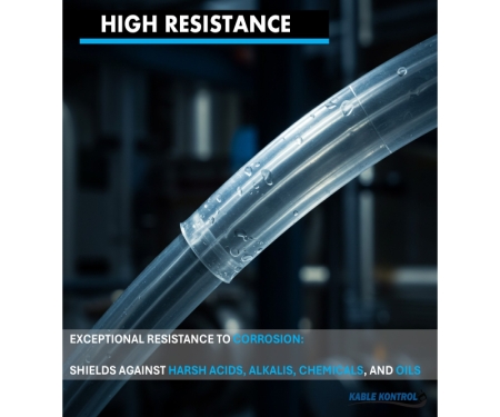 Kable Kontrol® PTFE Heat Shrinkable Tubing delivers advanced protection and electrical insulation in the harshest industrial environments. Made from high-purity Teflon™ PTFE, this tubing excels in resisting corrosive substances and withstanding high voltages. Its wide temperature tolerance and chemical resilience make it a reliable choice for high-performance applications in aerospace, automotive, chemical processing, mechanical systems, transformers, and communication infrastructure. Designed for durability and efficiency, it offers long-term performance where other materials fail.