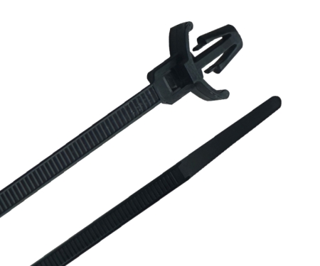 Kable Kontrol Wing Push Mount Cable Ties are made from high quality Nylon ensuring exceptional durability and long-lasting performance. Designed to withstand temperatures ranging from -40°F to +185°F, they can also endure up to +115°C with heat-stabilized material for continuous use and +130°C for short periods. With a strong tensile strength, these cable ties provide a secure and reliable fastening solution for various applications. The UV-resistant black winged push mount cable ties feature carbon black additives, offering superior protection against UV damage, making them ideal for both indoor and outdoor use. Winged Push-mount cable ties create a larger surface area, ensuring that the tie remains firmly anchored to the mounting surface. This helps prevent any movement or slippage of the tie after installation. Their one-piece construction ensures consistent performance and reliability, while the curved tip allows for fast and easy threading, speeding up the installation process. Our wing push mount zip ties are RoHS and REACH compliant, meeting environmental and safety standards, making them perfect for use in automotive, industrial, and outdoor cable management tasks.