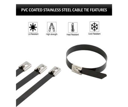 - Steel Cable Ties Coated with Black Polyester for Enhanced insulation, & added outdoor durability