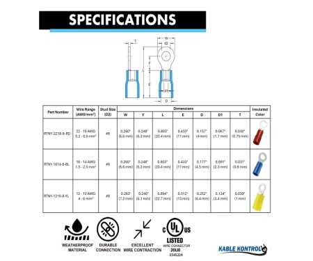 Kable Kontrol® Ring Terminal Connector - Nylon Insulated Features