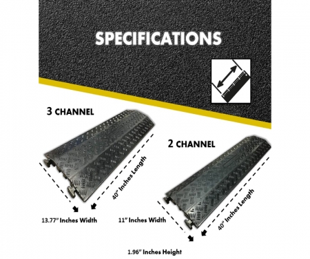 Kable Kontrol® Medium duty drop over cord covers are inexpensive but have many of the features of heavier duty models. These Drop over cable covers are perfect for use around the home, office, garage, etc. Use it anywhere you want to provide protection for your cords and cables from walk-over pedestrian and light vehicle traffic. Commonly Used in Classrooms, and for events. The body is made of strong, dense rubber which will withstand the elements in any setting. The base has excellent traction for a sure grip on the floor or surface below it, and the raised diamond tread on top will make certain that shoes and feet will grip it as well, and not slip.