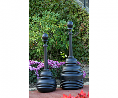 SafeSmokerTM Cigarette Receptacle is made of high-density polyethylene with UV inhibitors, with a galvanized steel collection bucket inside. Design restricts oxygen to quickly extinguish burning butts. Top of container removes easily to access and empty internal bucket. The rain-protective design keeps water out and eliminates odor. Includes integrated hold-down tabs for security and wind protection.