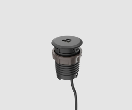 - Desk power outlet, ETL certified and in compliance with national standards of safety.