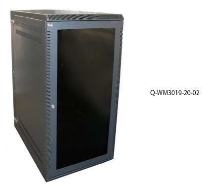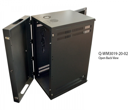 Quest 300 Series Wall Mount Enclosures are our best-selling wall mount enclosures. They provide equipment access through the smoked acrylic reversible front door, as well as through a locking swing-out rear access. They come with front cage nut rails, are available in seven sizes, and come in a black powder coat microfinish.