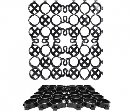 Strong enough to drive on before fill to spread dump and gravel, TRUEGRID® PRO-LITE goes in fast. In large projects, PRO-LITE arrives pre-assembled in 4’ x 4’ sheets of 4 grids each. These 16 square-foot sections weigh only 11 lbs. and are easily handled by one man. The grids are locked together with the weight of your foot and can be reconfigured as needed. The grid can also be cut with a handheld circular saw to go around trees or shrubs, etc.