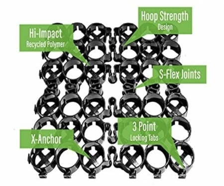 - Industry best-patented design with integral flex joints that are necessary for project longevity and adaptability to any climate or soils. Robust connectors that allow for quick installation and will not separate. No staking, or clipping necessary.