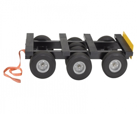 These All Terrain Dollies can be a major benefit in many conditions. The large oversized wheels give the unit, and any material on board, a smooth vessel to move goods in between areas. Yellow adjustable plate fitted to the rear of the unit. The plate acts as a barrier for items that fit snug on the dolly. When the plate is down, it makes room for any oversized products that are too long to fit perfectly square onto the platforms of the dolly. The front of the dolly is an open design that makes it easy to secure any sort of pulling device that may be used. Also included is a strap that can be used to pull the unit, by mechanical or manual means.