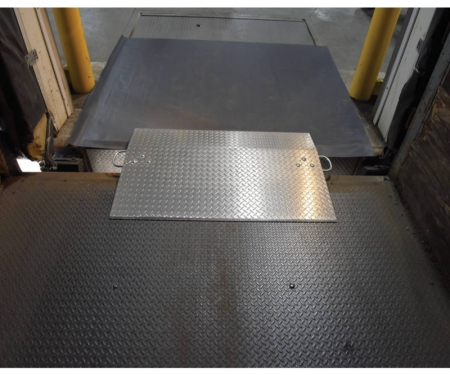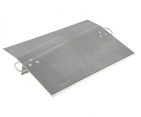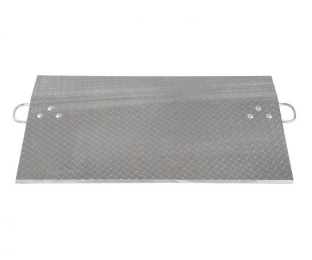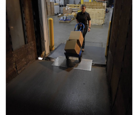Aluminum Economizer Dock plates are an economical way to speed up truck loading and unloading. Spans the opening between the dock and trailer to allow pallet or hand trucks, along with pedestrian traffic to safely move in and out of the trailer. The dock plate is constructed of high strength, non-skid aluminum alloy tread plate. The lightweight design with bolt-on zinc plated legs and handles on each side makes portability easy. Locking legs for OSHA compliance. The bend or crown is 11 degrees and located 9" from edge of the dock plate. Not for use with fork trucks.