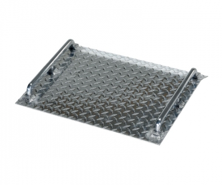 Aluminum Mini Dockplates can scale 3" to 5" high curbs and door thresholds. Ideal for use with two-wheeled hand truck for deliveries. Aluminum construction is lightweight yet durable, 1/8" thick plate. Features carrying handles and diamond tread plate surface for better traction.